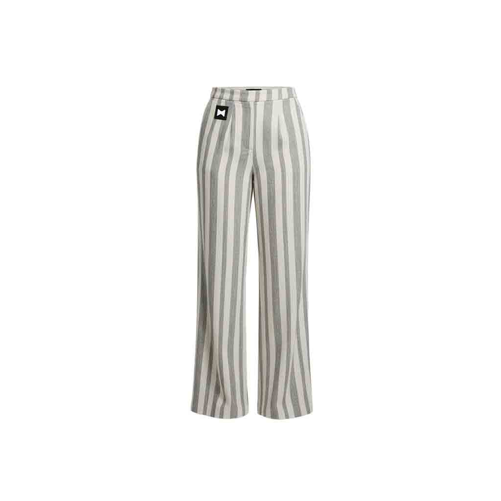 - The high waist on these striped pants women elongates your legs and defines your waist. A reliable zipper and button closure offers a secure yet accessible fastening for effortless dressing